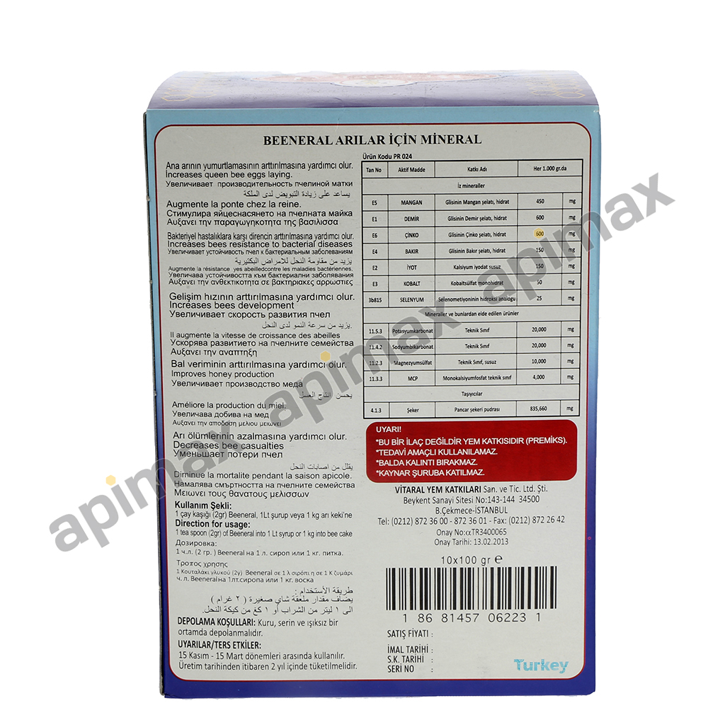 BEENERAL Integratore alimentare bilanciato con oligoelementi per api, confezione da 1 kg (10 buste da 100 g), per una maggiore resistenza alle malattie.